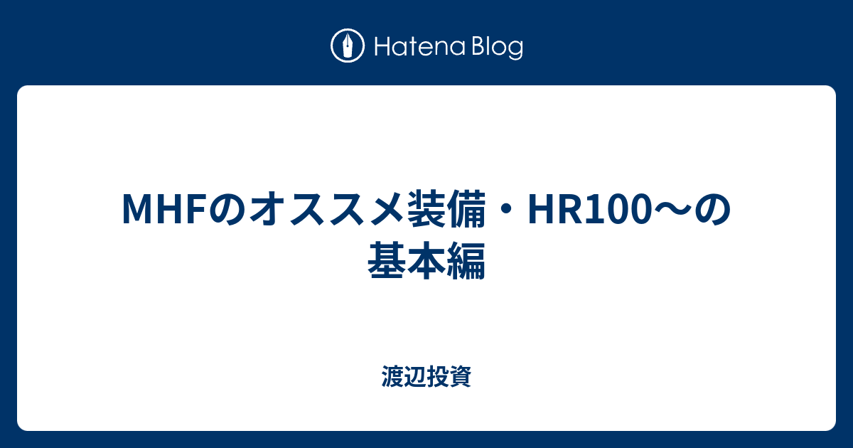 Mhfのオススメ装備 Hr100 の基本編 渡辺投資