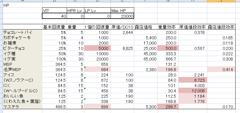 回復剤の効率比較 貧乏なりのro研究室