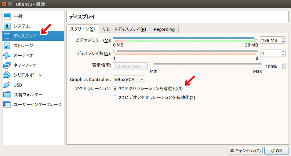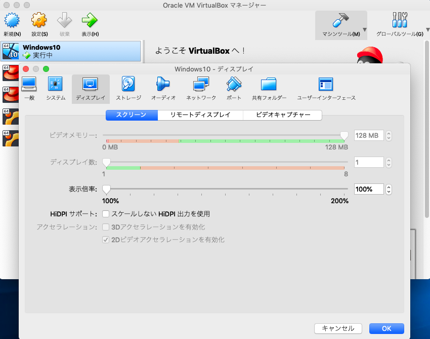 ディスプレイ設定 Virtualbox Mania
